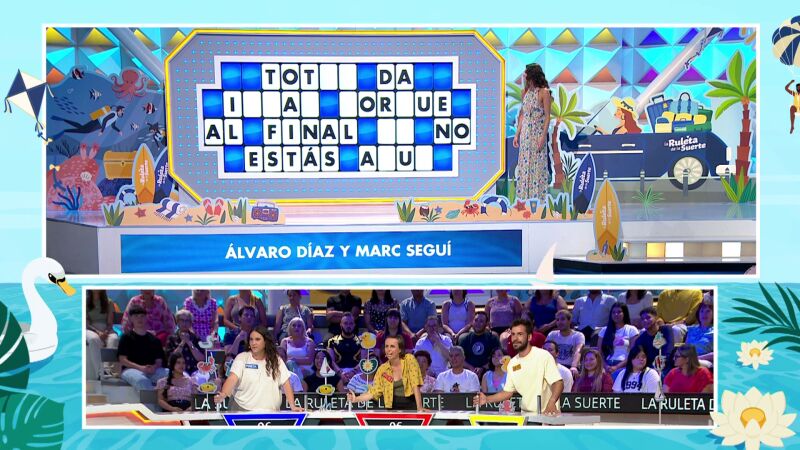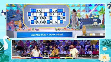 Ninguno de los concursantes de La ruleta de la suerte conseguía adivinar este panel de la prueba rápida. La situación ha sido estresante para todos, pero más aún para nuestro presentador.
