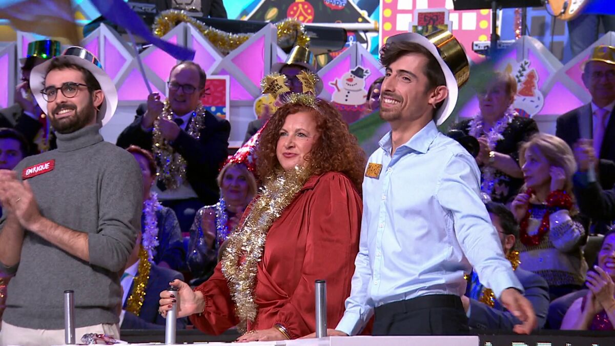 El segundo panel ha sido resuelto por Marc y su suegra Lola. “¿Nunca ha habido problemas?” ha bromeado Jorge Fernández mientras gesticulaba una arcada en referencia a las uvas y las campanadas.