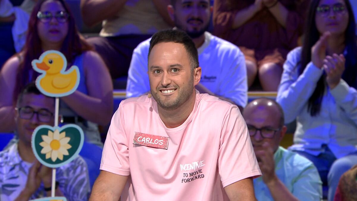 El panel tampoco le ha ayudado. Aunque corto, tenía muchas consonantes. Con tiradas precisas, el concursante del atril rojo ya lo tenía casi resuelto, salvo por la penúltima palabra. “A lo mejor no conoces esta expresión”, le ha dicho Jorge Fernández intentando ayudarle. Tras algunos minutos de tensión y el uso de uno de sus comodines, por fin Carlos la ha visto. “¡Qué sufrimiento!”, ha bromeado el presentador.