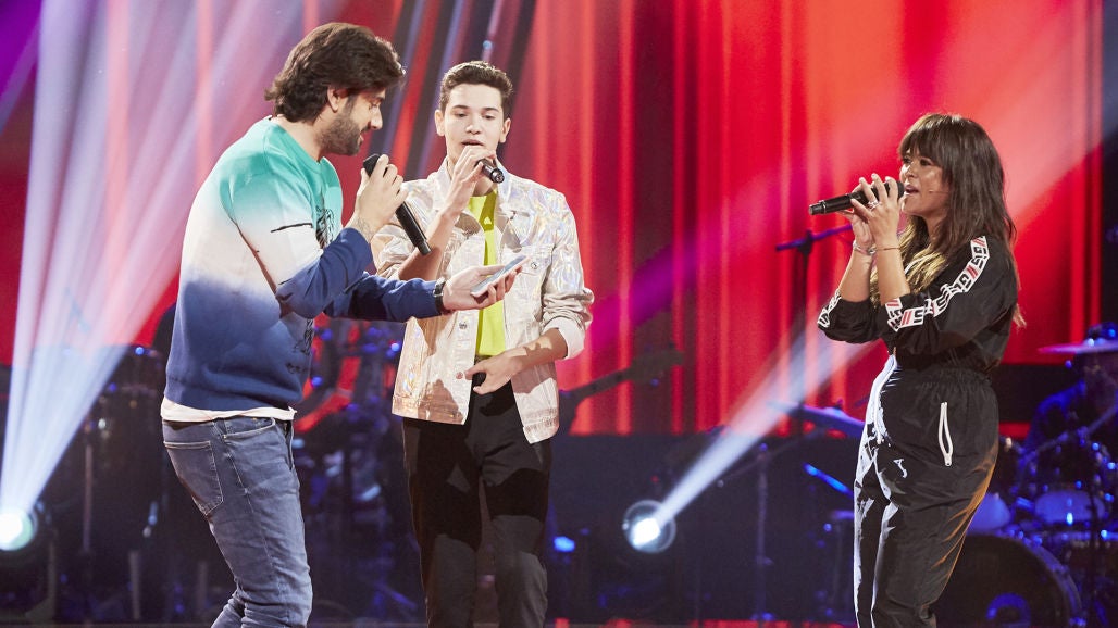 Melendi, Vanesa Martín y Javier Crespo, un momento inédito cantando 'Caída libre' en la Semifinal de 'La Voz Kids'
