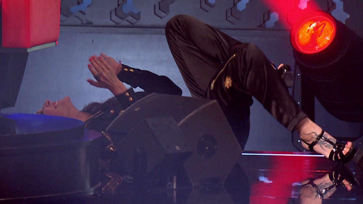 Sin embargo, el momento de ponerse de pie se le ha complicado a la cantante; Alejandro y Pablo han ido a su rescate y la han levantado del suelo con mucho "glamour".