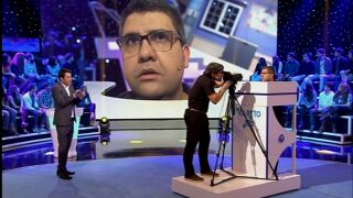 El integrante de la mesa del jurado saluda cariñosamente al presentador y recuerda la anécdota que los unió en el pasado.