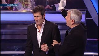 Sobera le cuenta a Jorge Fernández que su concursante en La Ruleta se llevó mucho dinero. Además Carlos se ha puesto el guante de collejas, por si Jorge pronunciaba más schwarzenegger