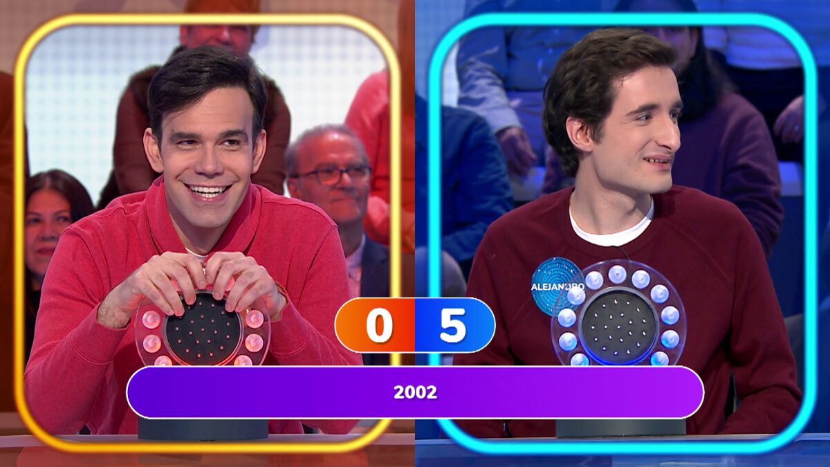 Los concursantes se enfrentaban en el duelo central de La Pista teniendo que adivinar una canción del 2002. Un gran año para Alejandro que, tal y como ha dicho, fue cuando nació.