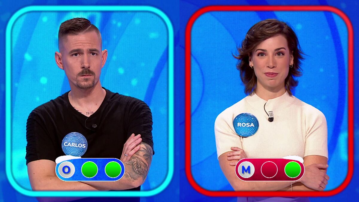 En esta ocasión, Carlos ha rozado la sorpresa. Con mucha calma y seguridad, ha comprobado cómo sus horas de práctica en la aplicación móvil de Pasapalabra han sido una buenísima inversión. Sin duda, este madrileño que trabaja como recepcionista de hotel se ha convertido en uno de los rivales más peligrosos a los que Rosa se ha enfrentado.