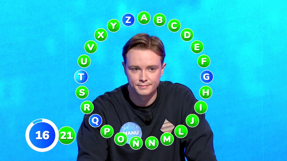 Los marcadores se han encontrado con un empate a 20 aciertos. Rosa ha puesto en verde dos letras más y se ha plantado. Era el turno de la remontada de Manu. El madrileño ha sacado un as, por lo que sólo le quedaba otra letra para ganar. Sin embargo, todo se ha complicado en un final de infarto. ¡Descúbrelo en el vídeo!