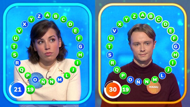 Tanto Manu como Rosa han avanzado lentos, pero seguros durante el enfrentamiento, aunque la gallega ha ido ganando cierta ventaja y ha sido la primera en terminar la primera vuelta y también el tiempo en su marcador. ¡Se ha quedado a tan solo tres palabras del bote millonario!