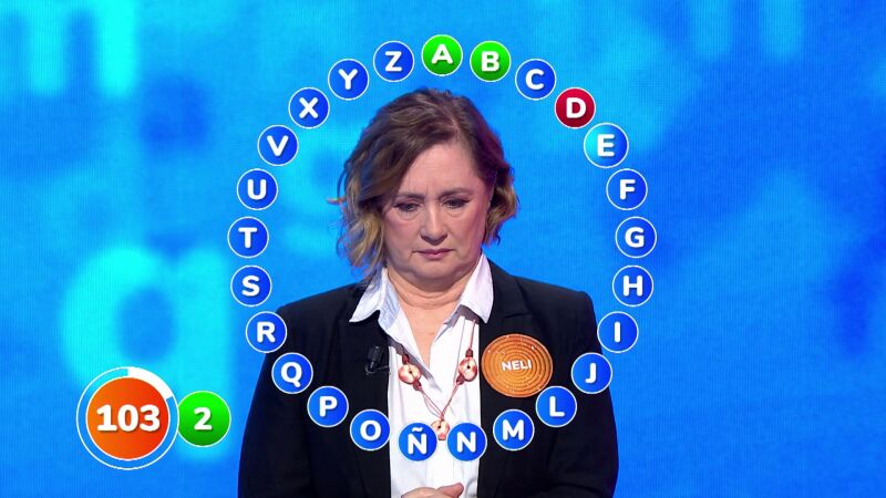 Neli, por el contrario, ha tenido un pequeño error en la cuarta letra del abecedario que le ha hecho ser más precavida en sus respuestas. A pesar de ver como su contrincante avanzaba, Neli ha querido andar con pies de plomo.