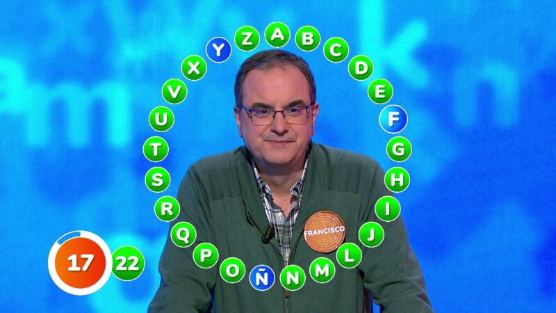 Esta vez ha sido Alejandro quien ha llegado con más tiempo a El Rosco, 21 segundos de diferencia. Sin embargo, este factor ha sido intranscendente ante la velocidad con la que ha jugado Francisco. Sólo ha necesitado cuatro turnos para completar la primera vuelta: ¡con 22 aciertos! Después, se ha plantado, lanzando un órdago a su rival.
