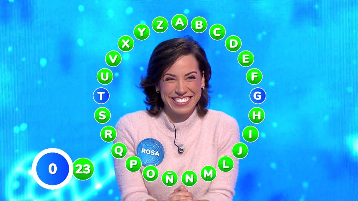 Tras las derrotas de los últimos programas, Rosa ha disfrutado de un arranque de semana muy plácido. Incluso ha llegado a El Rosco con una ventaja de ocho segundos. En cualquier caso, el factor tiempo no ha pesado o, si acaso, se ha notado que la coruñesa jugaba con un plus de tranquilidad. Tras una primera vuelta con ligeras ventajas en uno y otro atril, los marcadores se han igualado con 19 aciertos.