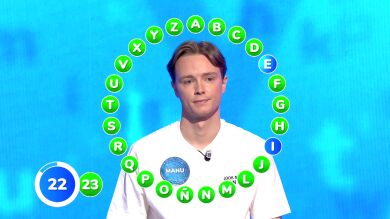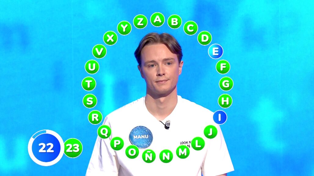 Tanto Manu, que ha comenzado la prueba, como Rosa han ido a muy buen ritmo. Tras el arranque de cuatro letras del madrileño, ella ha dado la réplica con diez. Por eso, este cara a cara se ha mantenido bastante igualado, con leves ventajas en el atril naranja, hasta terminar ambos la primera vuelta con 20 aciertos.