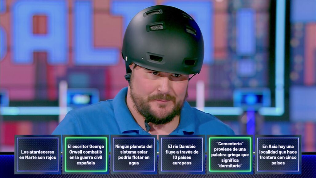Si acierta la última afirmación correcta que queda, se llevaría el gran premio de ¡Salta!, pero Abel tiene una mujer y un hijo, y no quiere echarlo todo a perder. “Soy valiente, pero no egoísta”, señala el concursante, consciente de la bronca que le podría caer si decide arriesgar y perderlo todo.