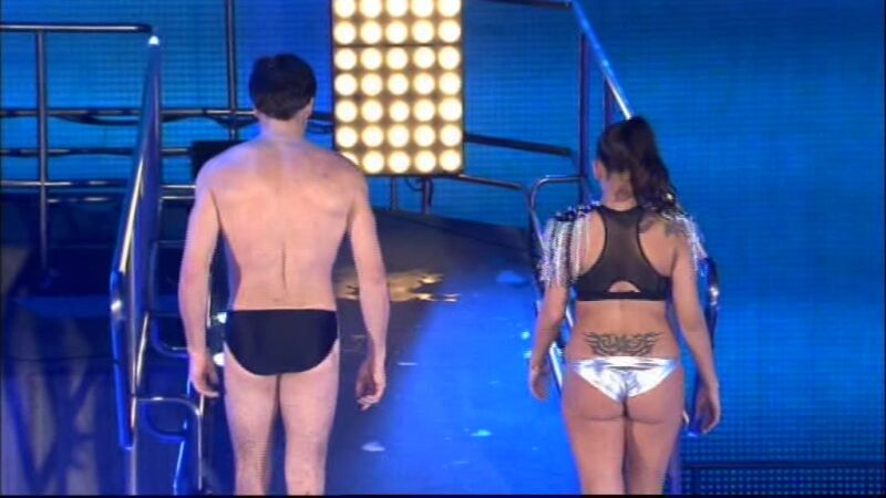 Lorena y Canales Rivera se han subido a la plataforma de los 5 metros de altura para ejecutar en pareja un 'mortal atrás estirado'.