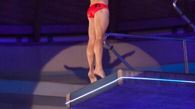 José Antonio Canales Rivera ha ensayado mucho durante la semana para poder realizar su 'mortal atrás' desde la plataforma de los 7,5 metros. Acompañado de su mujer Mª Carmen ha saltado y demostrado sus esfuerzos. El torero ha recibido un 7,2 de nota media.