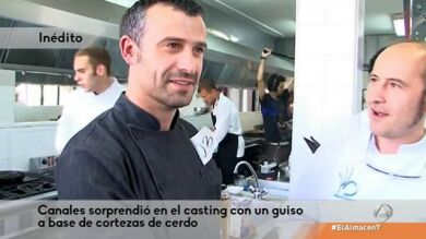 En 'El Almacén' hemos tenido acceso a unas imágenes inéditas del casting con el que Antonio Canales se aseguró su plaza en Top Chef. Canales sorprendió con un guiso a base de cortezas de cerdo.