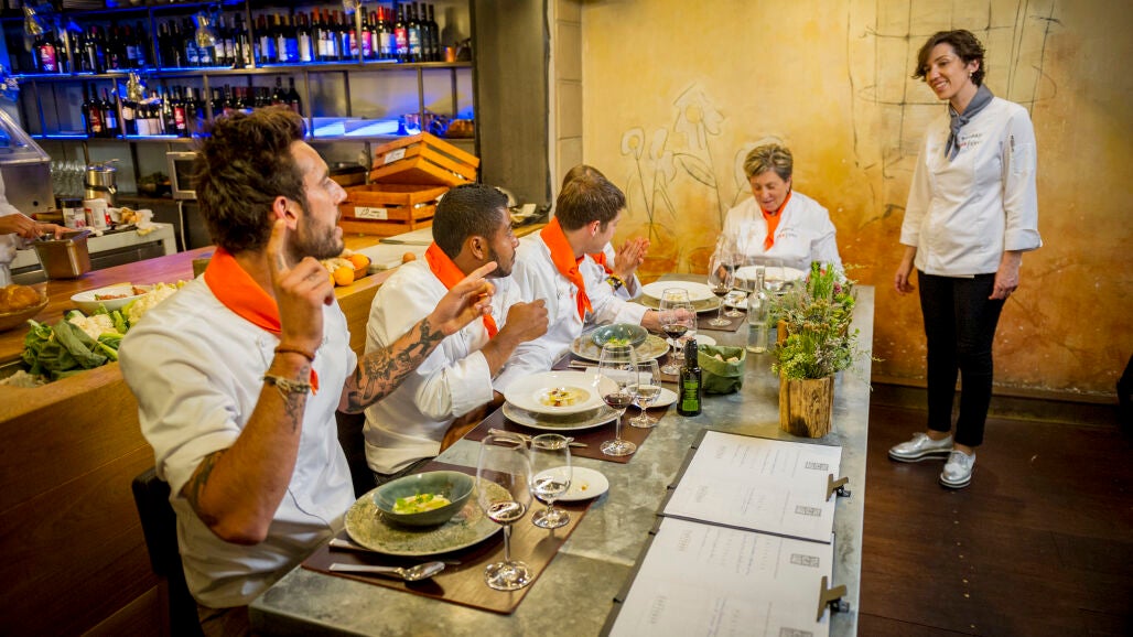 El jefe del equipo naranja, Oriol, no ha dejado pasar ni una al equipo gris diciendo que sus platos no eran buenos, que no era suficiente cantidad o que estaba mal cocinado y cuestionando en todo momento el hacer de sus compañeros.