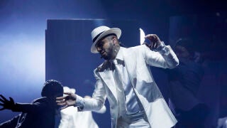 La puesta en escena ha jugado con los contrastes, como el blanco de su traje y el negro del fondo, y con los espejos y la iluminación. También han sido parte esencial los bailarines, con piruetas que no han pasado desapercibidas precisamente como un añadido al juego de sombras.