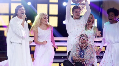 No es que Llàcer haya salido a cantar, sino más bien a ser 'maltratado' por 'Los Inhumanos'. Mientras David canta "Me duele la cara de ser tan guapo", el resto del grupo cumple a 'rajatabla' con su papel sobre el escenario.
