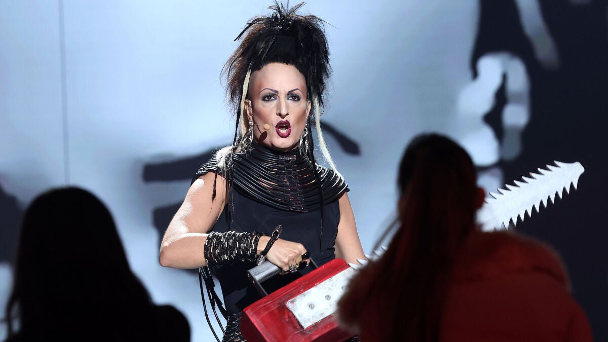 El inicio de la actuación ha sido tan impactante como su look, que ha dejado a todos con la boca abierta: el trabajo del equipo de caracterización y peluquería es absolutamente brutal. Josie ha conseguido así transportarnos a todos a los años 80 y poner a bailar al público con ‘La funcionaria asesina’.