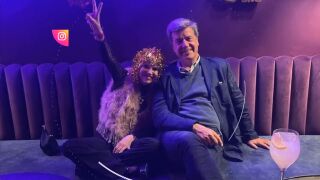 Eugenia Martínez de Irujo, con lo que parece ser una peluca dorada, se apoya sobre el hombro de su hermano. Un gesto cariñoso que acompañan con una sonrisa y que Tana, hija de Eugenia y Fran Rivera, celebra.