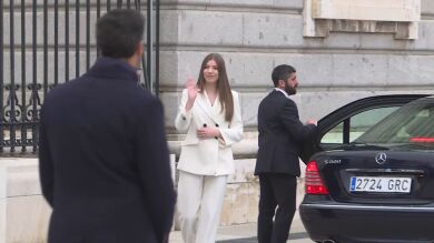 A su llegada, se ha visto a la infanta ataviada con un traje blanco que recuerda a su hermana, la princesa Leonor, y a su madre, la reina Letizia en sus primeros actos. ¡No te pierdas su llegada en el video de arriba!
