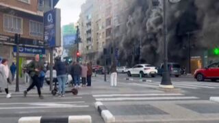 Una enorme columna de humo impregna el centro de Valencia. La investigación está en marcha para determinar qué ha podido desatar el fuego. El barrio de Jesús, donde se sitúa este local, se llena de humo y expectación.