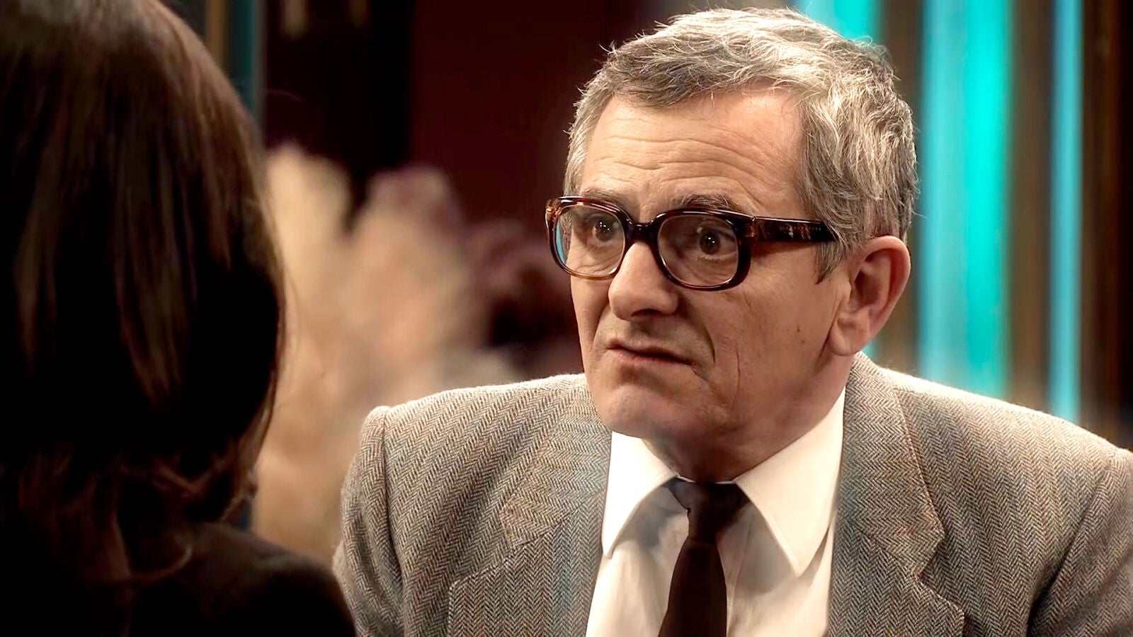 Ignacio intenta consolar a su tío Justo tras la discusión con Teresa. Justo le cuenta a su sobrino que se había visto con Aurora, su exnovia de la universidad, y le confesó que la culpa del hundimiento del bufete es de su marido por culpa de los celos.