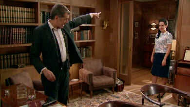El comandante intenta calmar a Sonia y a su hija al escuchar los ofensivos comentarios de la anfitriona.