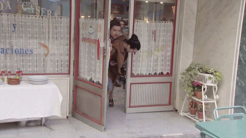 Como todos los seguidores de 'Amar' sabéis, Marcelino y Manolita son el matrimonio inseparable. Más aún podemos verlo aquí, en una de las tomas falsas que nos muestran lo más divertido de cada actor. Cuando ambos se dirijen a salir del Asturiano, a Manolita se le engancha el tacón. No llega a caer gracias a Marcelino, que está detrás justo para cogerla a tiempo.
