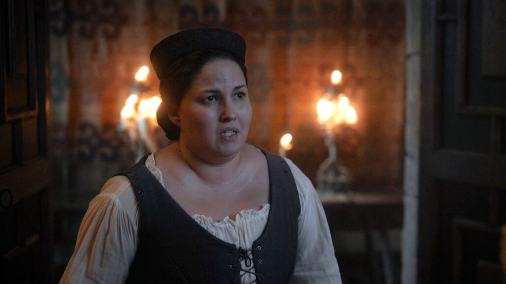 Durante el forcejeo, Rodrigo de Guzmán recibe un golpe en la cabeza. Es Catalina que acaba con él para salvar a Lucía. “Os merecéis ser feliz”, le dice su doncella.