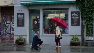 Tras ver el piso, Álex está deseando quedarse con él y Ulrike pone alguna pega con las humedades. El propietario del piso le pregunta a Álex que si son pareja y él reacciona respondiendo lo primero que le viene a la cabeza, que si “son pareja de toda la vida”. Esto a ella no le sienta muy bien y se va del piso y Álex se pone de rodillas en mitad de la acera para pedirle por favor que le ayude “si no lo haces por mí, hazlo por la llamada de la sangre”.