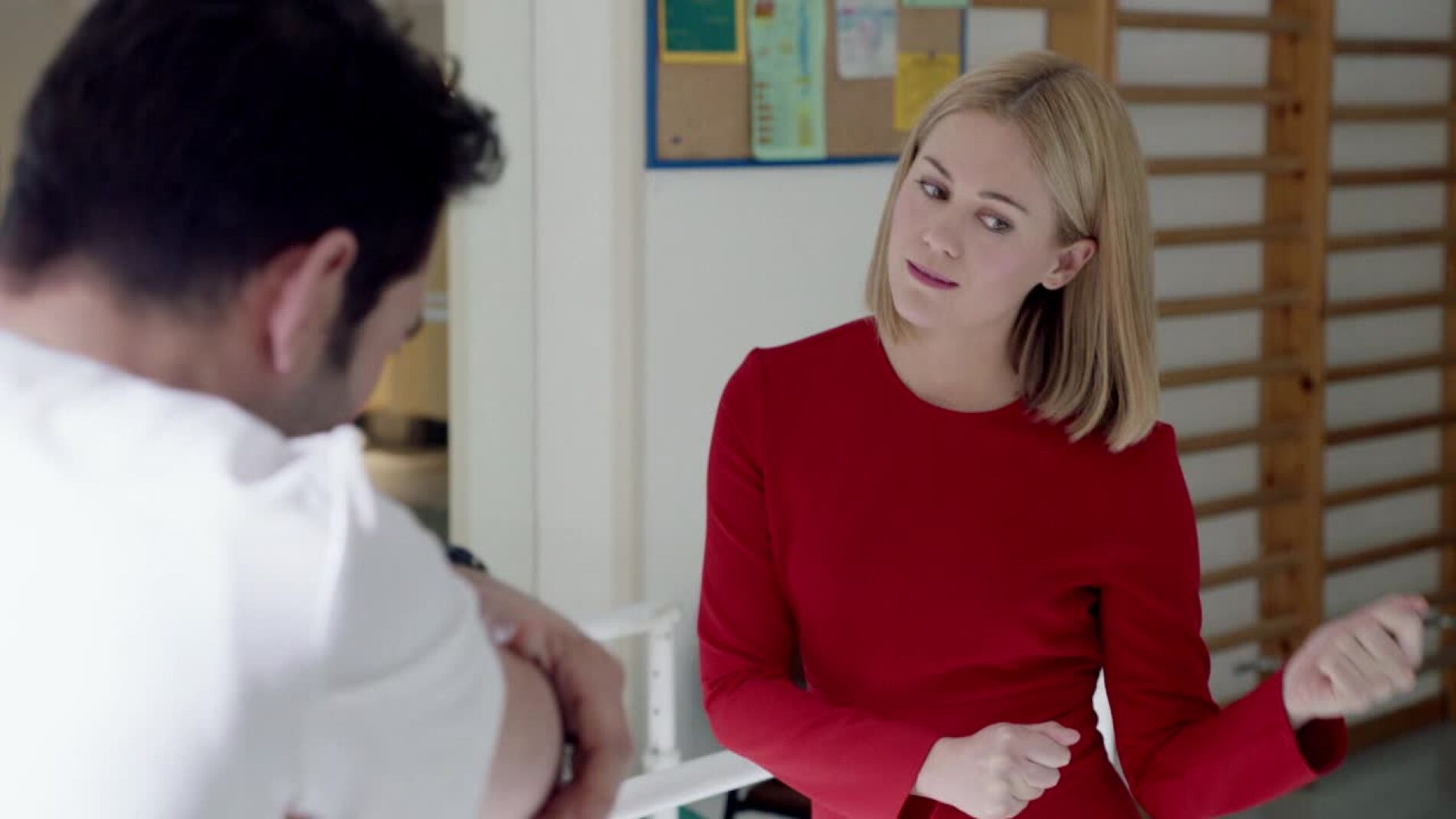 Álex se ha comprometido con Ulrike a enseñarle a bailar para el baiile de damas de honor de la boda a la que tiene que ir, ella no tiene ningún sentido del ritmo y Álex no deja de reírse de ella, Ulrike se enfada con él por sus comentarios.