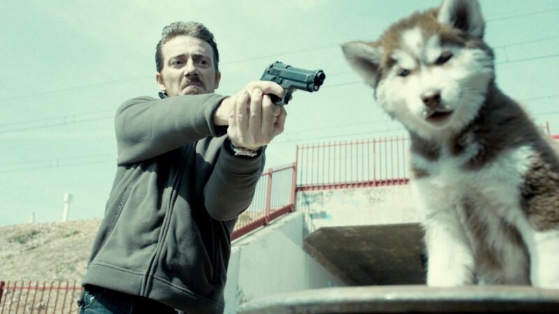 Ramiro incita a Andrés a matar a tiros a un cachorro de perro lobo para que practique su puntería y pueda vengar la muerte de Elena y del que iba a ser su hijo.