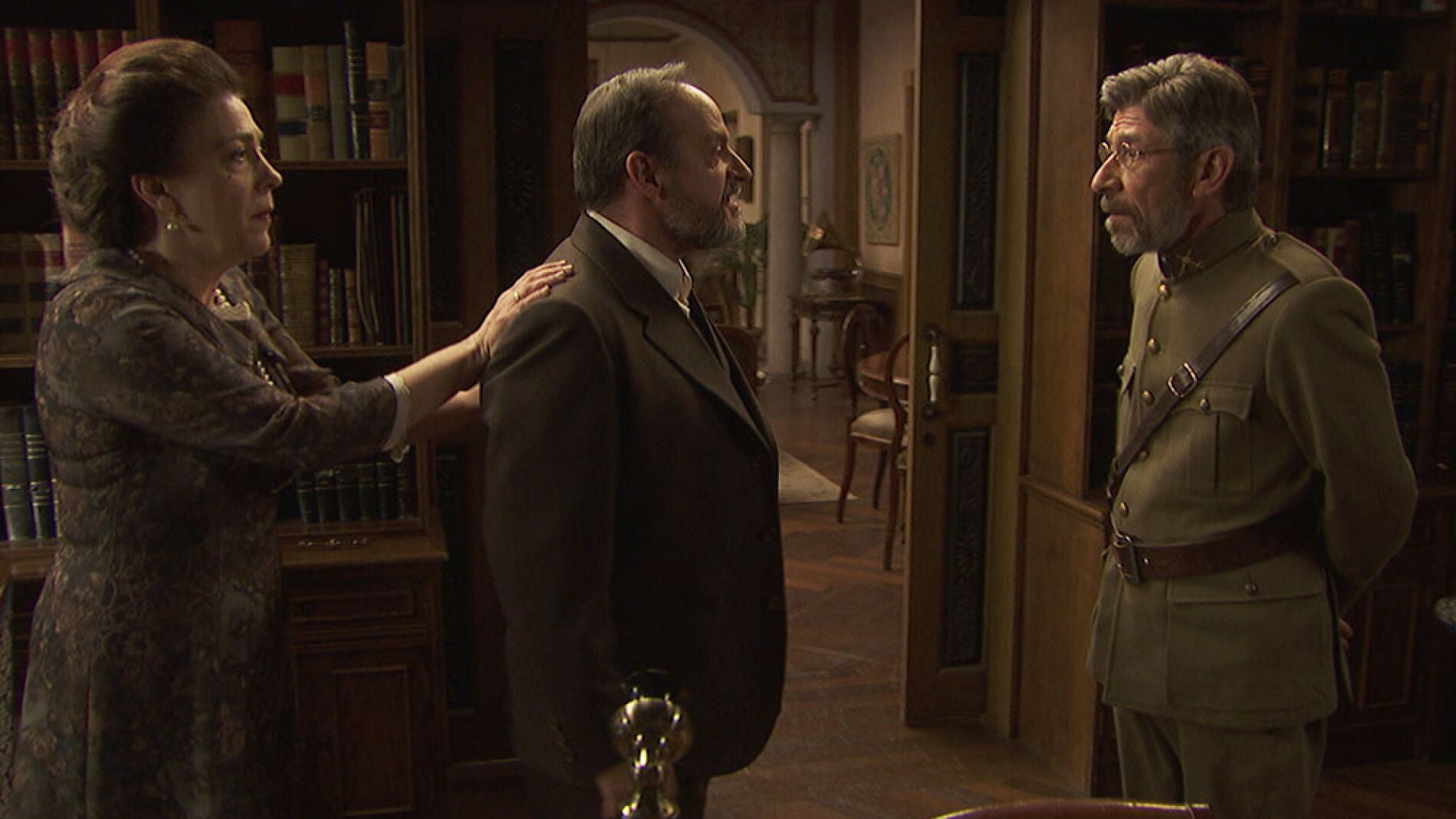 El general Pérez Ayala aparece en la Casona cuando Raimundo, muy alterado, le pide apoyo a doña Francisca para liberar a su hija. Raimundo, en un tenso cruce de palabras, le exige explicaciones al general sobre el paradero de Emilia y Alfonso.