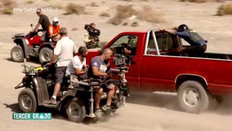 Vlad intenta escapar a través del desierto mientras Héctor le persigue con su moto. Se trata de una de las persecuciones más espectaculares de toda la serie. En Mar de Plástico. En el 'Tercer Grado' nos hemos colado para conocer cómo se rodó la trepidante escena.