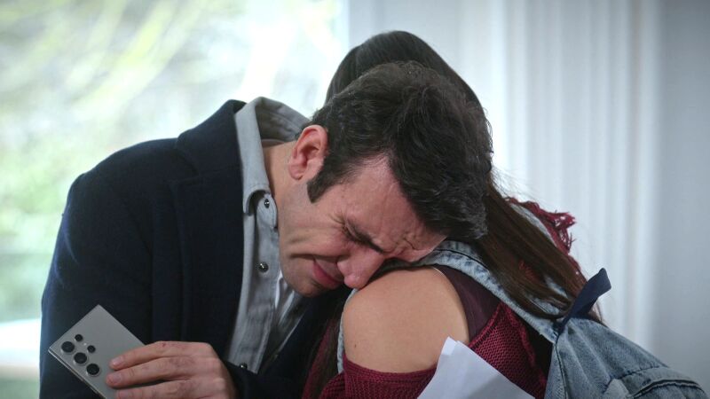 Justo cuando iba a explicarle qué pasaba, Parla ha aparecido frente a él. Ya no podía soportar ver el sufrimiento de su padre sin hacer nada. Se han abrazado con fuerza… y Timur se ha derrumbado. Si hubiese llegado un minuto más tarde, Parla ya no estaría allí.