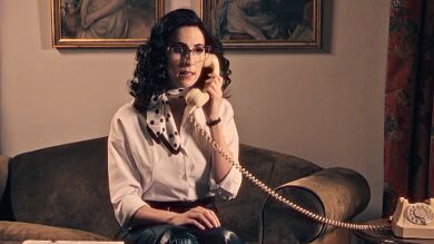 María atiende una llamada telefónica. Es Isabel, que que finge ser la secretaria de un amigo abogado.