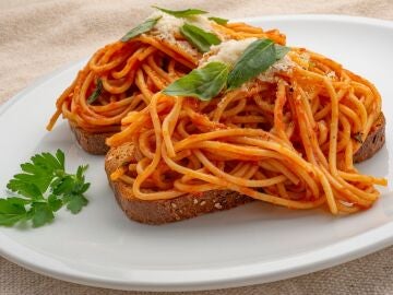Para 4 personas Arguiñano elabora la divertida tostada de la tía Marga: ¡con espaguetis! Una receta divertida, fácil y muy rica