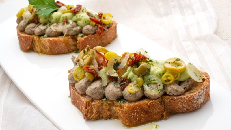El chef propone una receta ideal para el verano: una crema suave de aguacate con base de hummus, coronada con encurtidos y aceitunas negras.